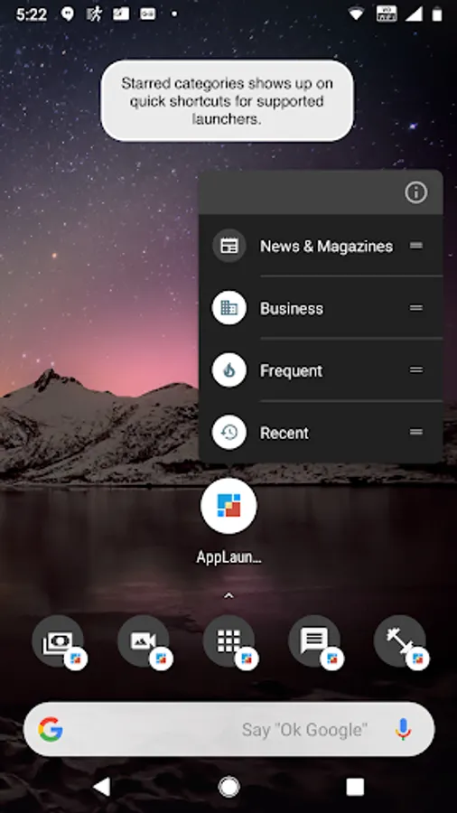 - Star or pin a category to show in quick shortcuts for supported launchers
