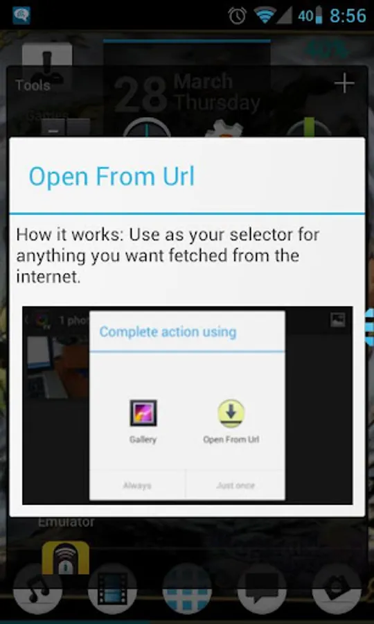 Open From Url is an app that lets you choose to get any files from internet with a link. So if you have an image from internet that you want to edit, you can copy the link and paste it in the textbox when you choose Open From Url as your Browse Gallery or open directly from this app and send to an editor.