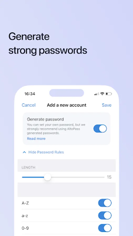 ✔️ AltoPass Cloud provides a convenient storage option for meta-data. You can restore your last passwords from the cloud in case you lose your device or change it.