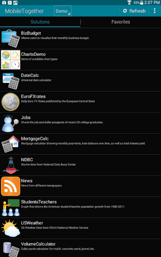 Use the MobileTogether Mobile App for Android to access mobile enterprise solutions built in MobileTogether Designer. Download the app now to connect to your company’s MobileTogether Server or to view our collection of sample apps! These will help you understand the potential for building any type of data-centric app in MobileTogether.