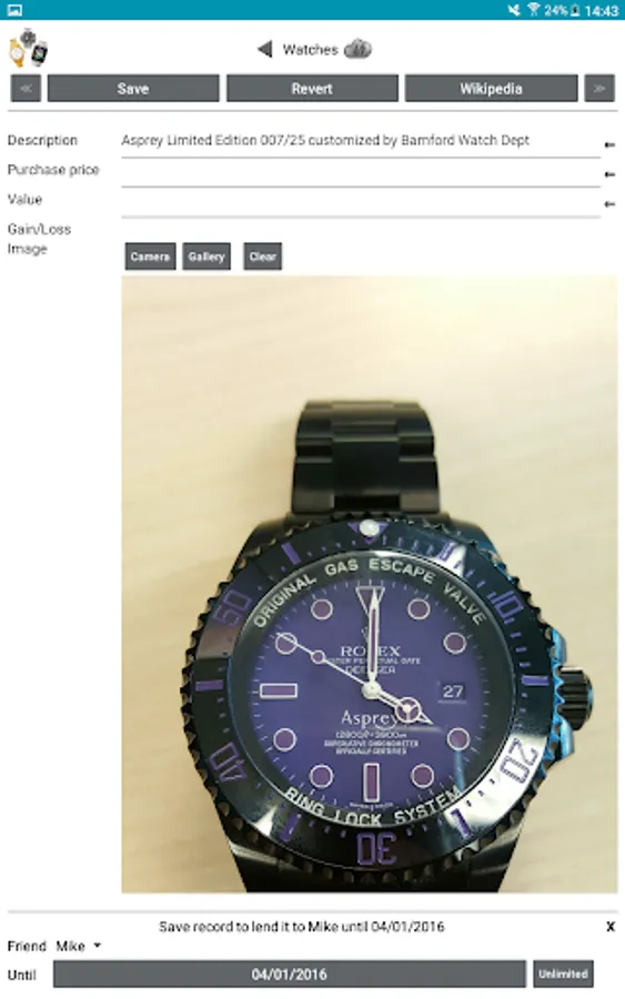 • Add photos, descriptions, links, Wikipedia information, and more, to your collection items