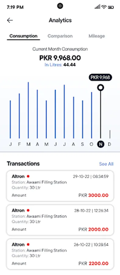 It helps you keep track of your spent on fuel and lubricants and not only gives an insight on your fueling behavior but also helps manage your fuel expenses. The app empowers you to manage your card related activities and functionalities such as getting card balance, loyalty points status, generating PIN Code, transaction details, customizing usage, getting supplementary card(s), reviewing analytics etc. are now available at your finger tips. The station finder feature helps you find and sort PSO Stations on the basis of products and services offered.