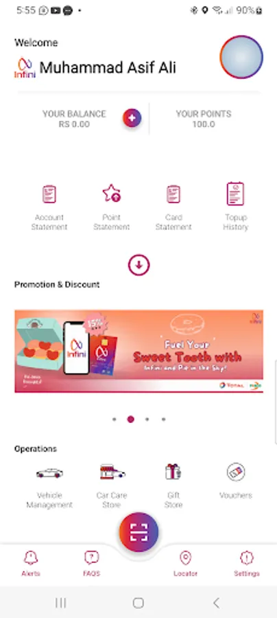 Manage your INFINI wallet from the INFINI app including viewing balance, generating statements and customizing your purchase patterns.