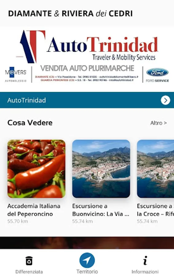 Available for free, it provides geo-localized content relating to the participating structures and the services of the tourist supply chain, offering all the details on the individual attractions, logistics and some services in the area, such as separate collection.