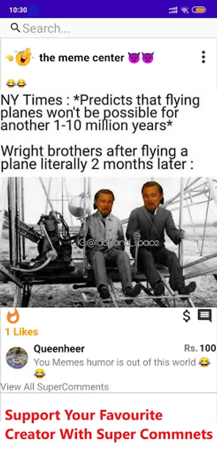 The Only Social Media Application Which Allows Users to Send Super-Comments to there favorite social media Influencers/Memers/Content Creators, It also have features like Authenticity Bar which allows user to Identify the difference between real and fake , and also allows users