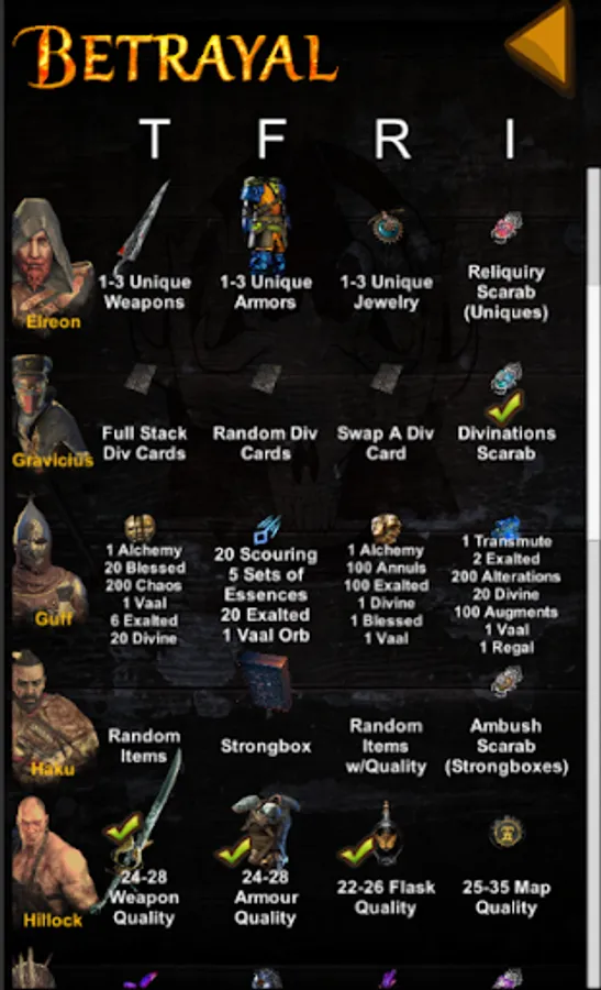Path of Exile Cheat Sheets for Betrayal, Delve, Incursion, and Legion Leagues