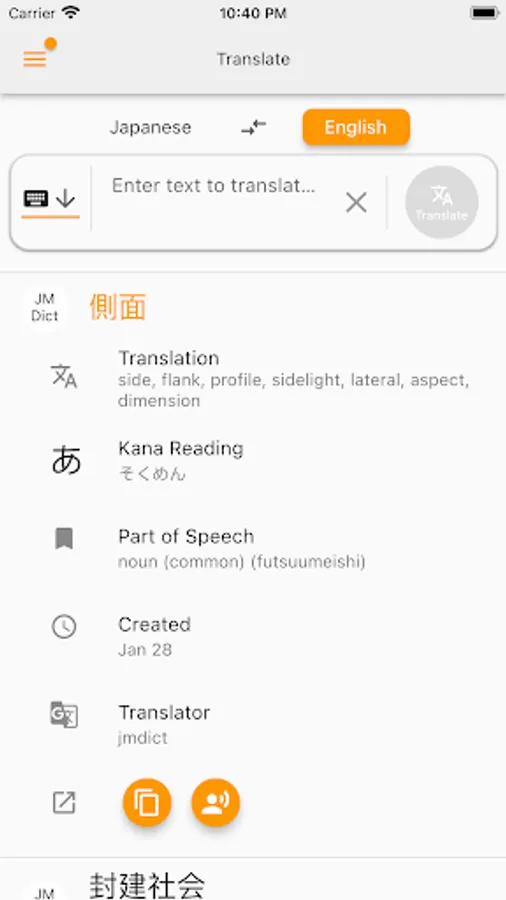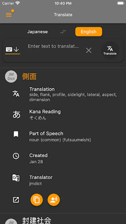 1a. Word search: Potto has extensive dictionaries that can translate into and out of Japanese with a wide variety of languages.