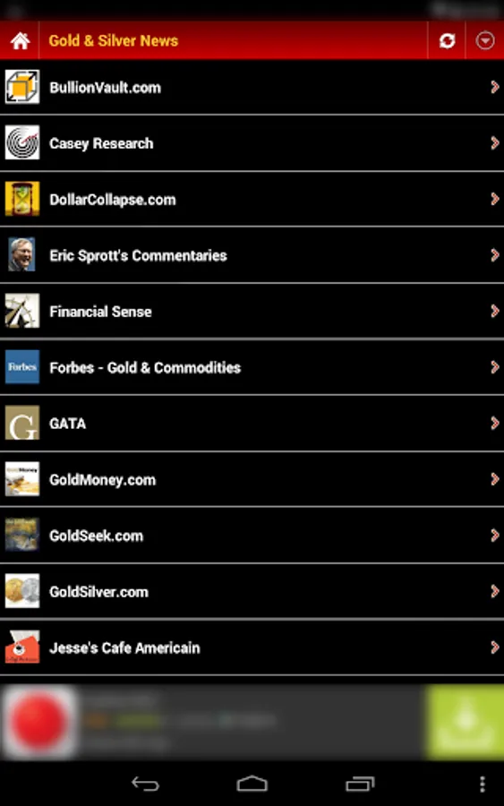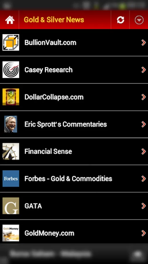 ▪ This app is a one-stop shop for precious metal price data AND financial news. Whenever there’s major price movement in the market, just go to the “Gold & Silver News” section of the app to quickly find out what’s going on from a curated list of credible financial news sources (detail list are shown below).