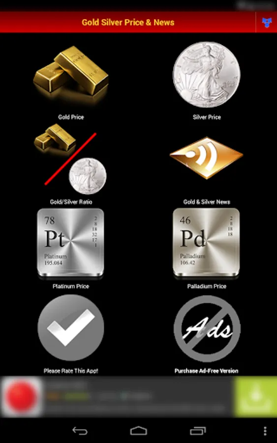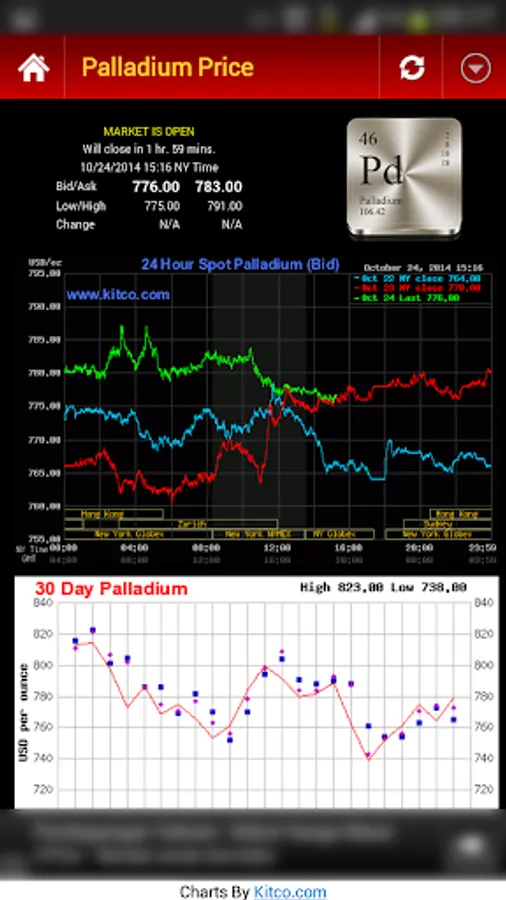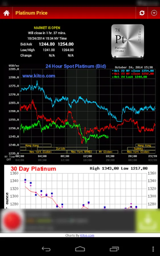 ▪ Fast 2-Click access to today’s up to the minute platinum, palladium, silver and gold prices in USD per oz (Bid and Ask Price).