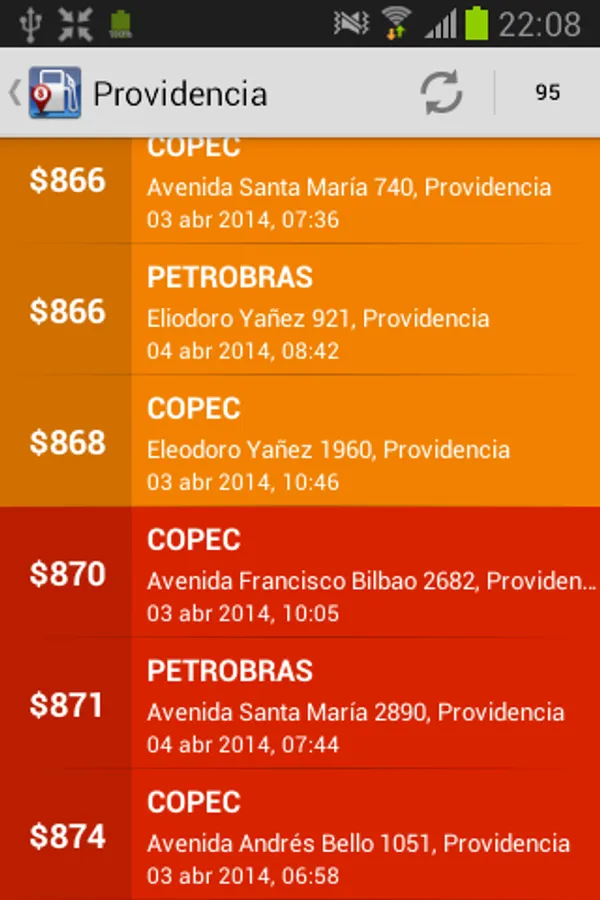 BencinaCL uses the information published in http://www.bencinaenlinea.cl, developed by the National Energy Commission. Application shows only the bombs that have prices posted on www.bencinaenlinea.cl.