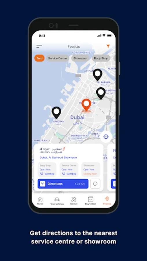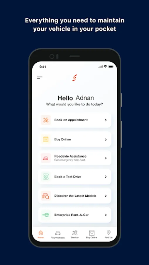 Your car profile is where you can view your car information, warranty, and service details at a glance. Just log in to the app using a mobile number registered with Al Tayer Motors and your car details will be fetched automatically.