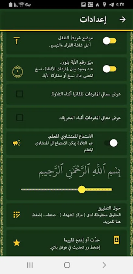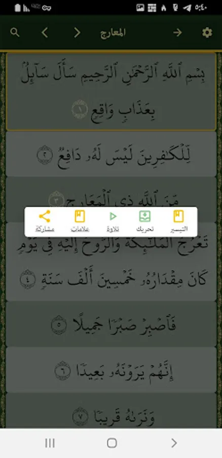 8- The ability to automatically move the Quranic text to coincide with your recitation at appropriate speeds, according to your speed level in recitation.