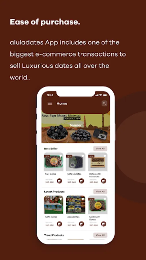 Alula Dates App facilitates for the customer to diversify in choosing the best types of dates at the best prices. It also provides fast home delivery services at the lowest cost.aluladates App includes the largest and most famous merchants to sell dates inside or outside the Kingdom of Saudi Arabia to all parts of the world at competitive prices.