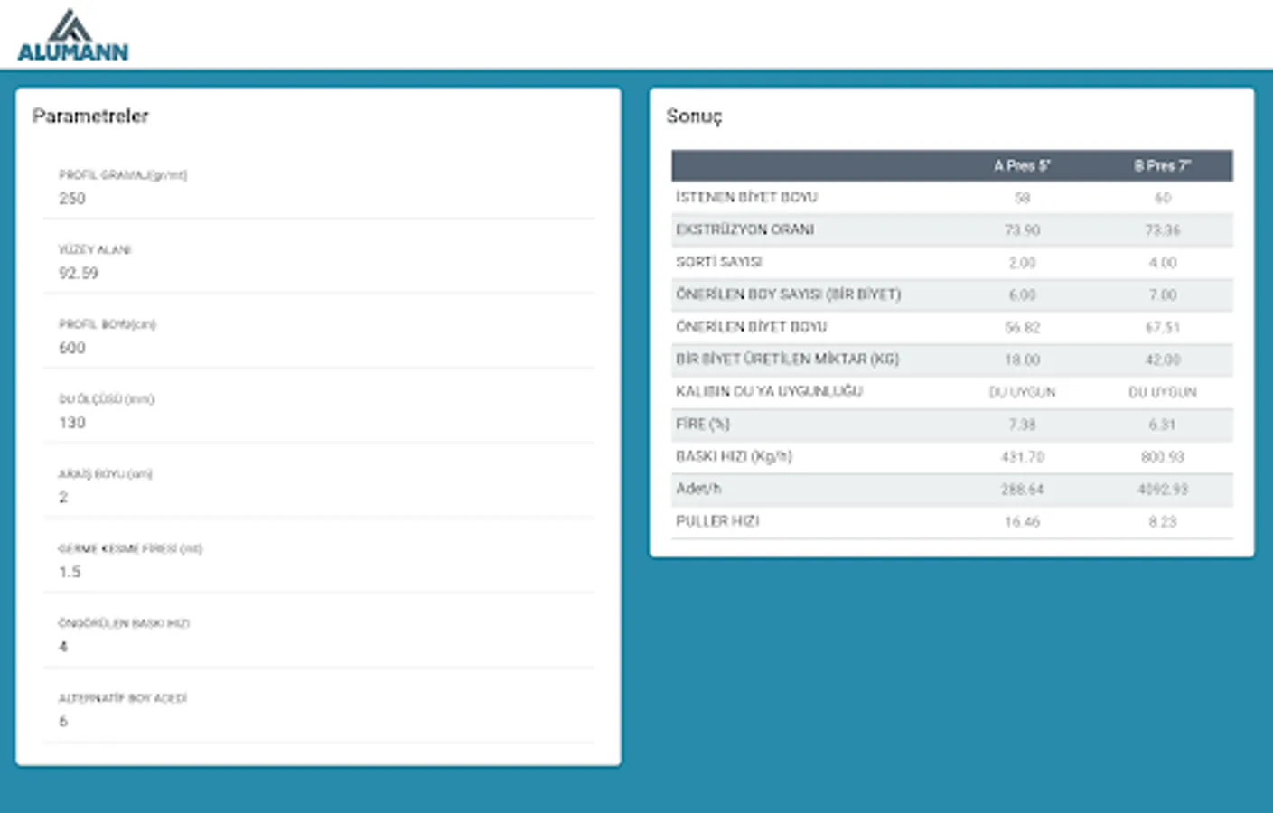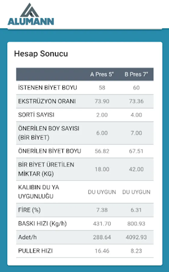 Quickly calculate your production results for your 5 "or 7" press machines.
