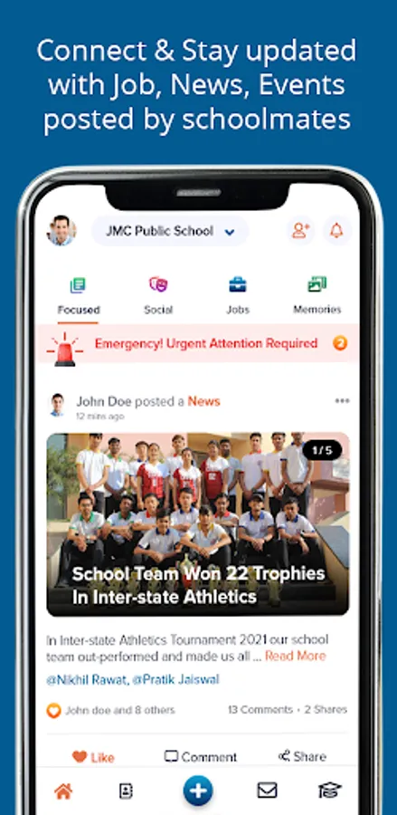 The App enables you to find better career opportunities with trusted job listing posted by fellow Alumni and to stay updated on news and events around your school. It also provides a special feature to broadcast emergency to seek fastest possible help from nearby Alumni during the time of emergency.