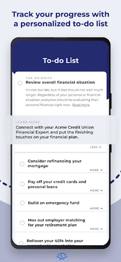 Alumnifi partners with Pocketnest to coach you to financial wellness in just three minutes a week. We walk you through all 10 themes of financial planning as you build your own complete plan. Using behavioral science and psychology, we ask you questions to get to know you and your financial dreams, to give you custom and actionable next steps. We also connect all of your accounts so you have a clear and comprehensive picture of your financial footprint.