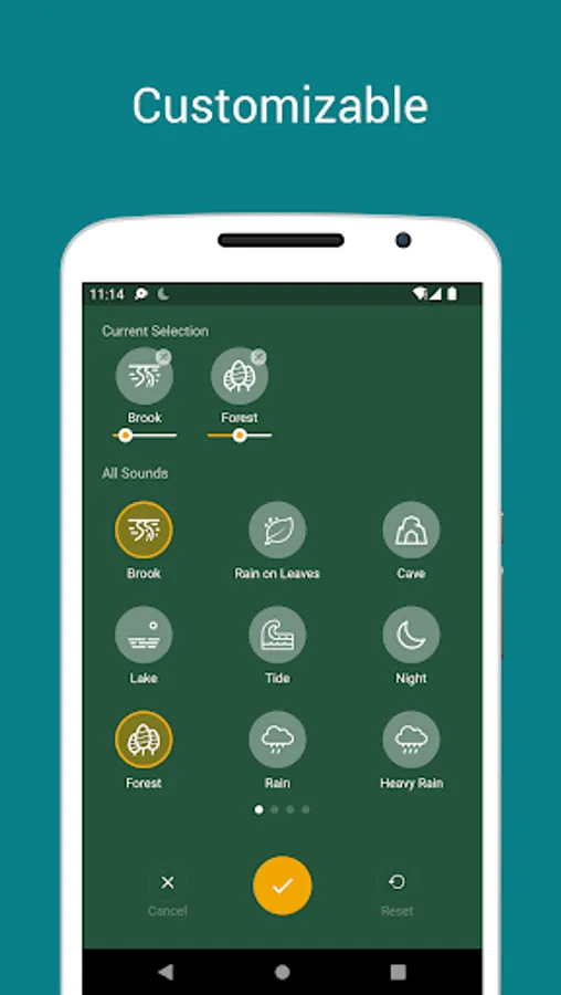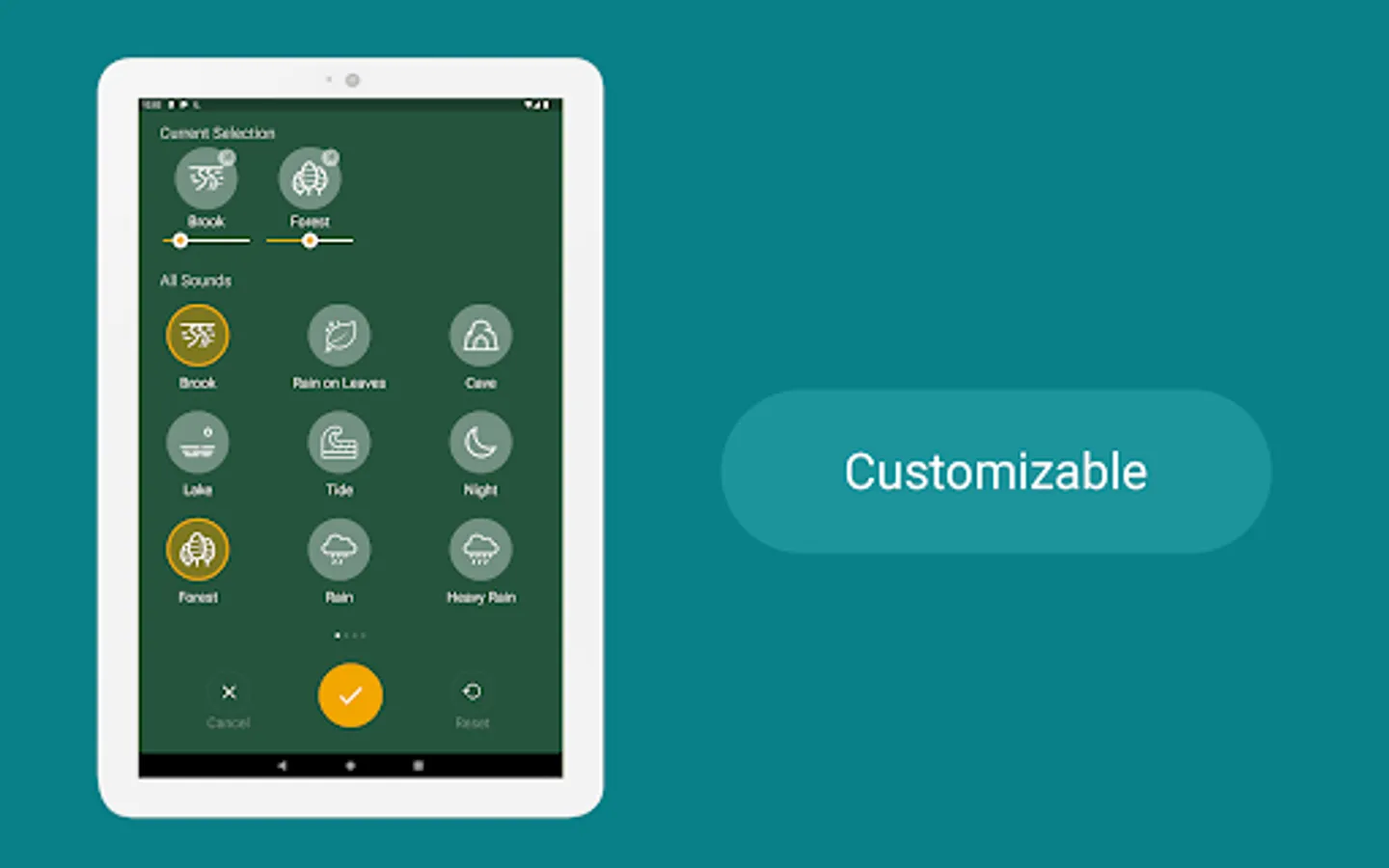This Nature Sleep noise app is highly customizable and easy to use. You'll have everything in front of you. You can increase or decrease the volume of different sounds very easily, and add or remove different kinds of sounds like wind chimes, seagulls, owl and bird chirping etc. to your nature sleep sounds combination.