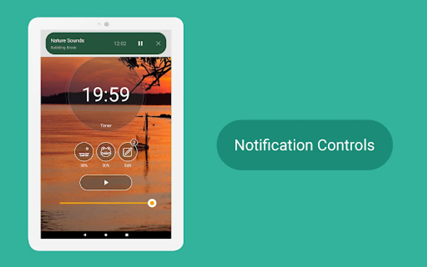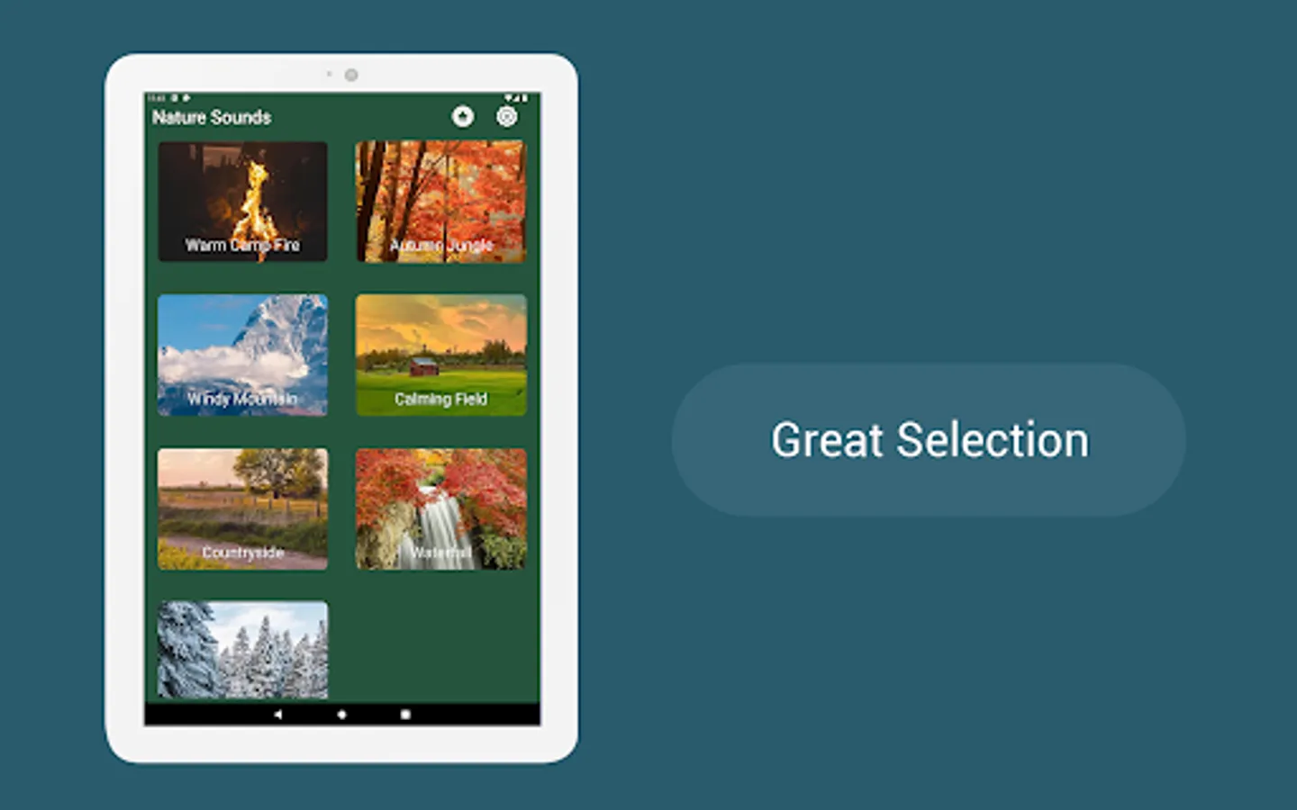 The nature sounds are completely natural, calming and soothing for the ears and mind. There is a great variety of nature soundscapes like babbling brook, evening lake, cave etc.. to help you sleep and have relaxation. These sounds can be played with different types of peaceful soothing sleep sounds such as bird songs, frog, wind chimes, seagulls, owl and more.