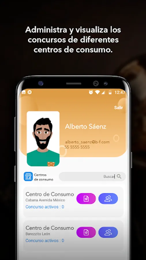 -History of consumption centers where you can view their contests and participants. The contests show their mechanics and results. In the mechanics part you will see what each mechanic consists of and in the results a filter by brands that offers their sales, ranking and objectives. The participants option shows a history of participants and the option to add a new participant.