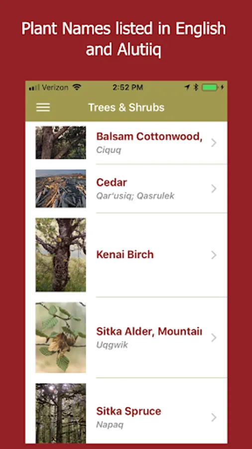 Alutiiq Plants displays a selection of Kodiak plants and their traditional uses. Audio recordings of the Alutiiq plant name are included where possible.