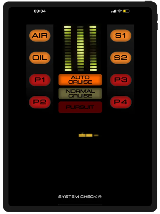 Test the cruise and pursuit modes, consoles, switch pods..etc