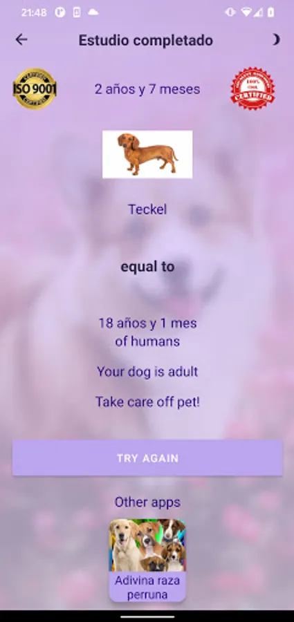 This app works for pure-dogs, cross-dogs live on average 1.22 years more than the pure.