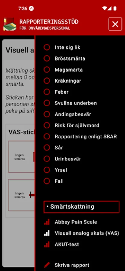 Rapporteringsstöd för omvårdnadspersonal tar upp olika symptom och tillstånd som du kan stöta på i ditt arbete.