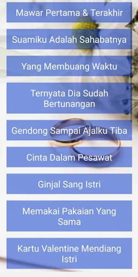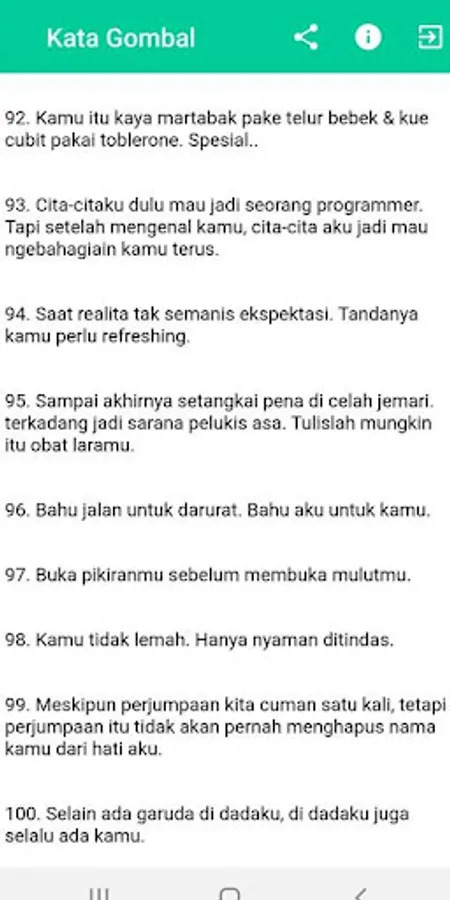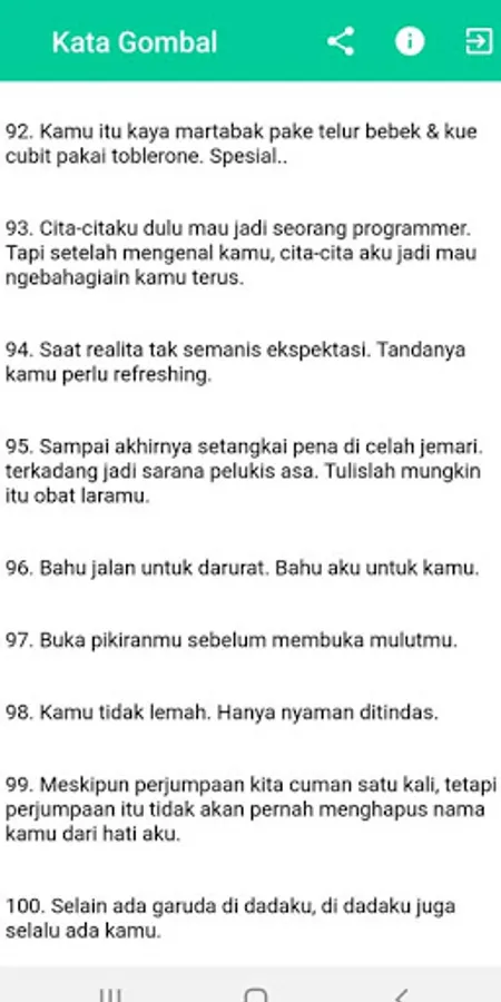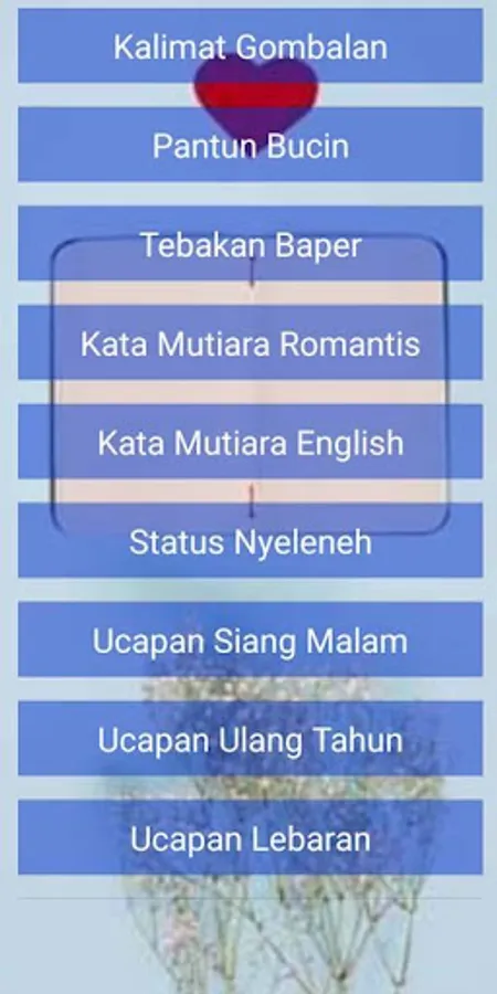 This application is an update of the previous application, namely "Words of Love and Love Stories". The words contained in this application are suitable as references to be addressed to spouses, girlfriends, lovers, husbands, even your wives, teenagers and adults who are in love or deepening their relationship through words.