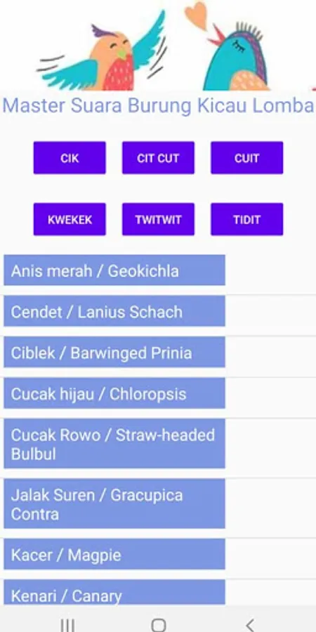 Come on, immediately download and install this application, make yourself and your bird chirping mania: D.