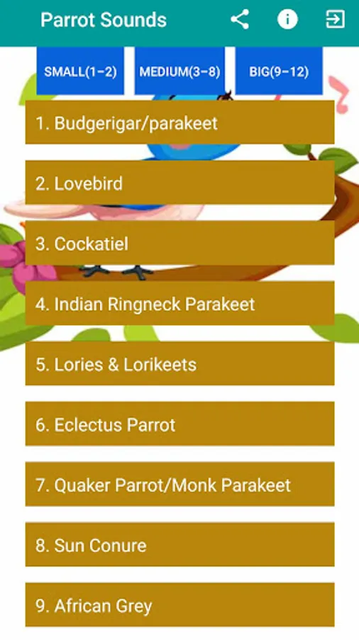 This application contains about parrot sounds and bird chirps with good sound quality. It is perfect as a master sound for your bird or parrot. Small parrot, medium parrot, big parrot, and other types of chirping birds. such as :