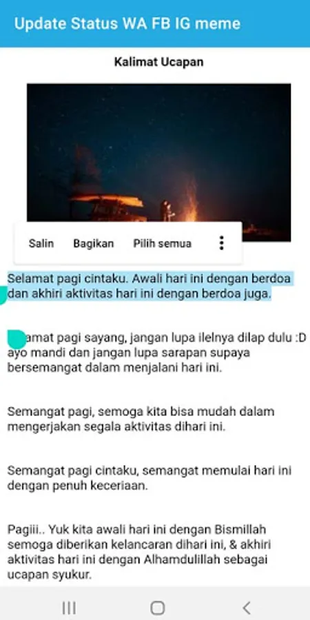 This application contains a collection of sentences or words that are very suitable to be used as references as statuses on WA, FB, IG, and other social media.