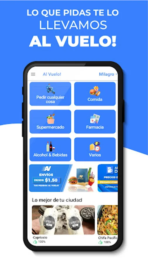 You are in Naranjal or Milagro , what are you waiting to place your order! Ask for what you want with On Flight! Ideal for your emergencies. Ideal for your needs.