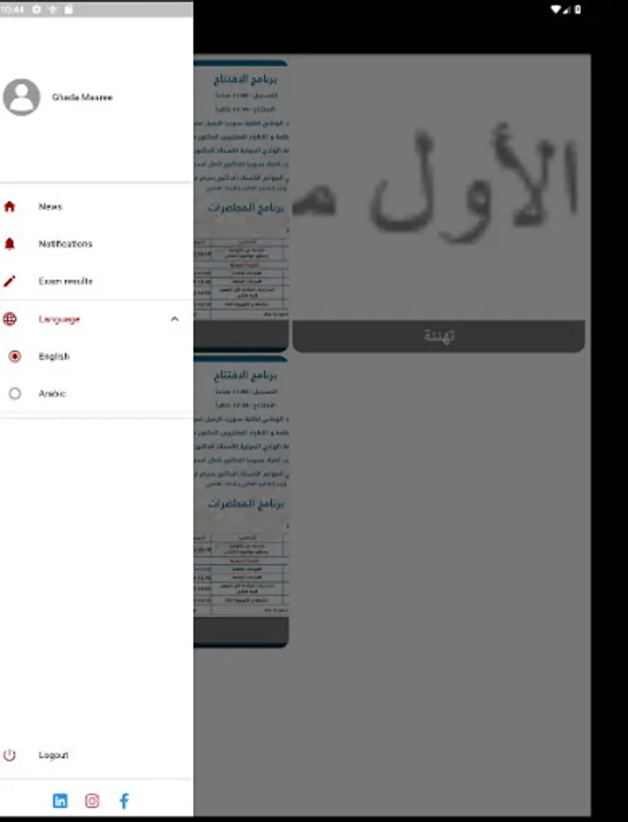 The application for Wadi University students to continuously access news and fetch materials, grades and lectures