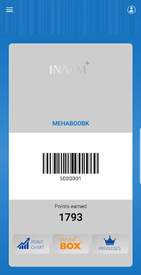 5) Generate Virtual Inaam Card which can be presented at checkout counter for scanning for Inaam card.