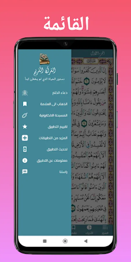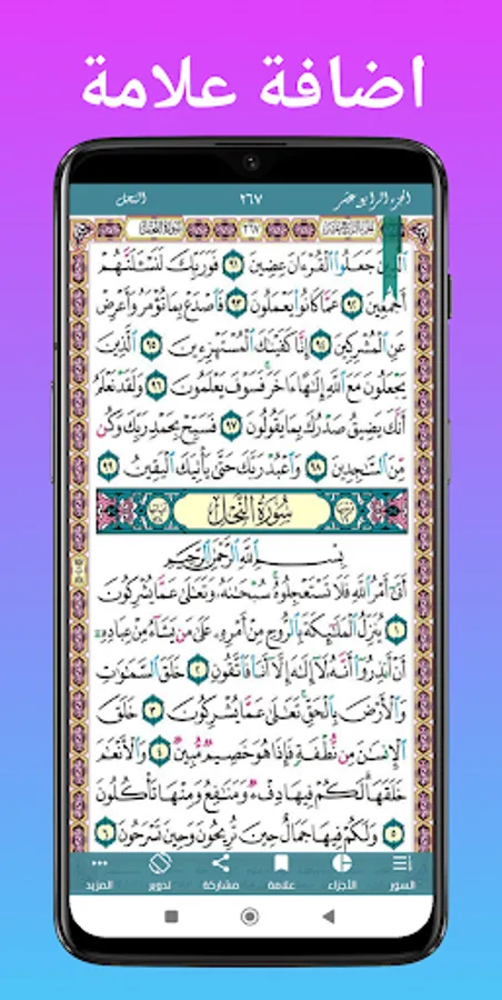 * The application contains the entire pages of the Noble Qur’an and a picture from the Noble Qur’an without an Internet connection.