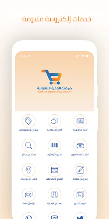 تسعى جمعية الوفرة التعاونية لتقديم افضل خدماتها للمساهمين ورواد الجمعية عبر هذا البرنامج، والذي يشمل العديد من الخدمات الإلكترونية المتنوعة: