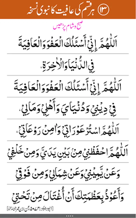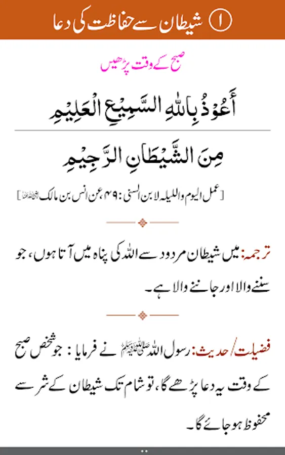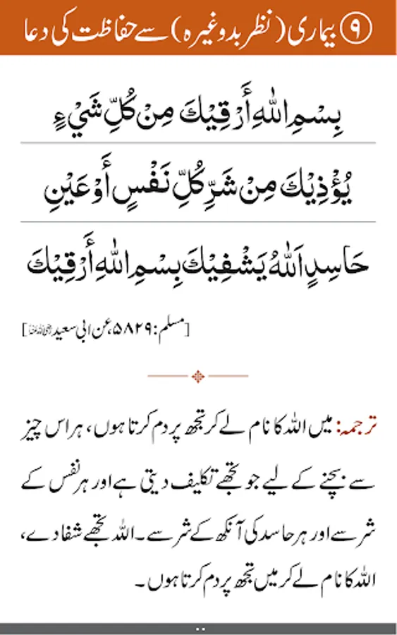 Hifazat ki Duain is an Islamic Smartphone application that gives Muslims all through the world a chance to protect themselves from Jinn, Witchcraft, Sihr, Sorcery, Evil Eye as well as other harmful things. Hifazaati dua or salamati ki dua is an app collection of ahadees and ayaat that protect the human beings from unwanted things. Is kitaabche mein in aayaat wa ahaadees ka intikhaab kiya gaya hai jo insaan ki hifaazat aur salaamati ka zariya hain. Dua is very important in every human life. Whenever someone in trouble or some kind of problem and make himself alone and want to take help then these dua make him happy..
