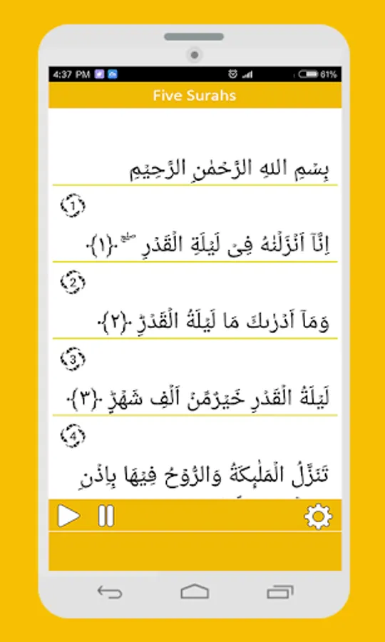 4. Play and Stop choices are offered to start and pause the recitation anytime.