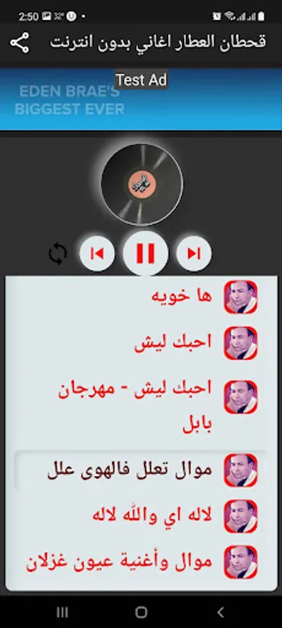 ميزة اعادة الاغنية او اعادة كل القائمة او الغاء الاعادة
