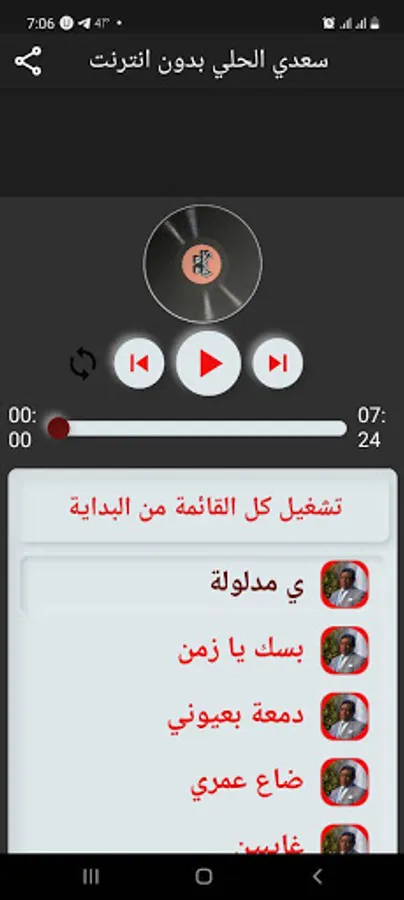 The feature of switching between songs