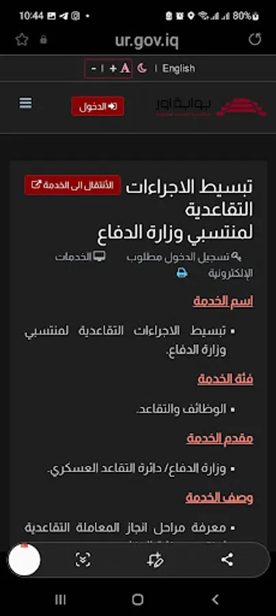 اجراءات التقاعد لمنتسبي الدفاع Screenshots