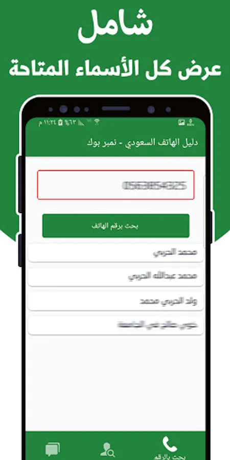 The Saudi Numberbook application distinguishes the ability to search for numbers from all Saudi numbers, name and number