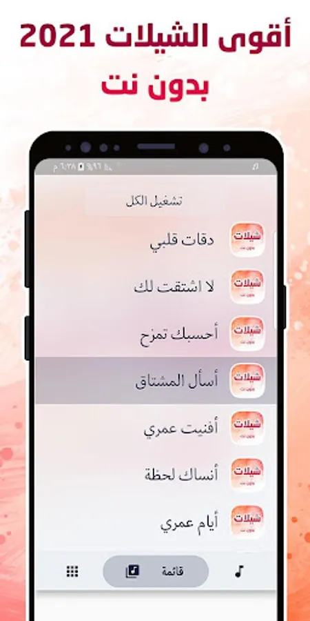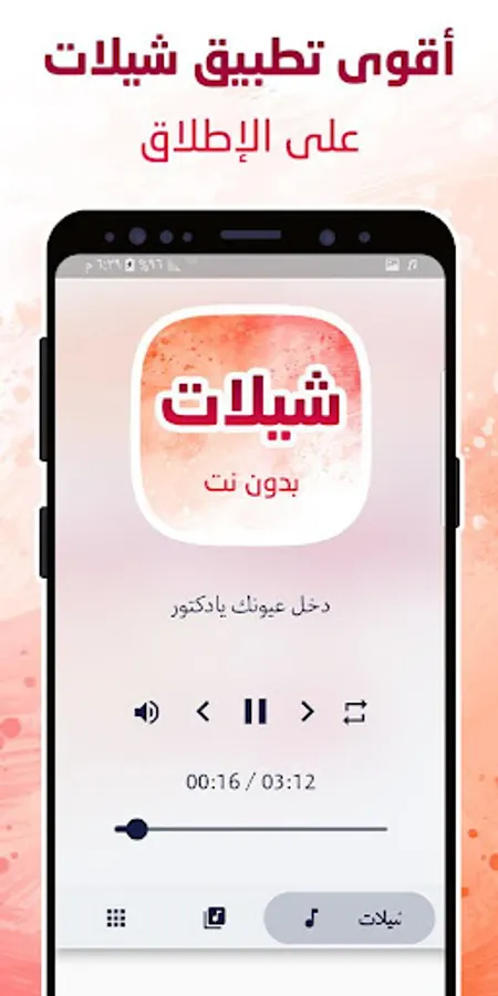 The application of Sheila without Net 2021 contains the most amazing chelates for the most amazing vocalists such as Fahd bin Fasla, Bandar bin Awir, Gharib, Abdullah Al Mukhlis, and there are also chelates for other singers such as Cub Al Dawasir, Hamza and Badr Al Ezzi