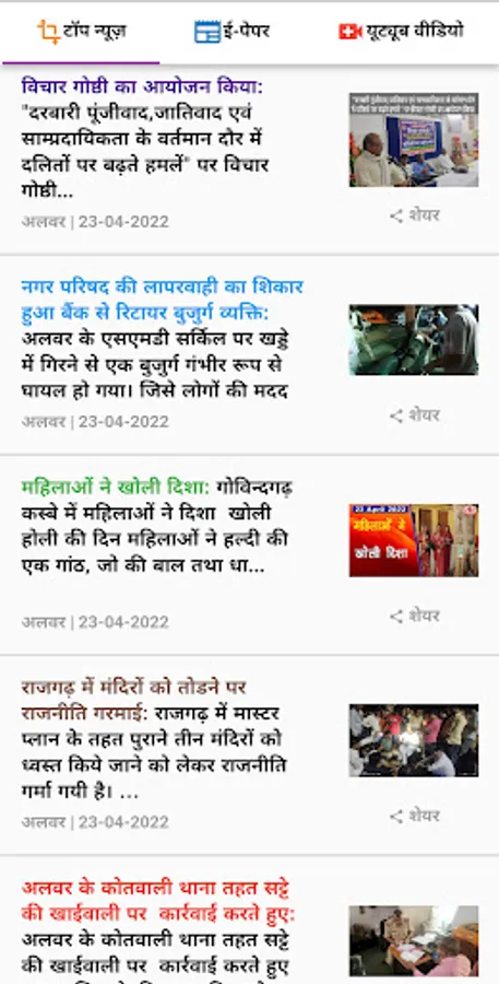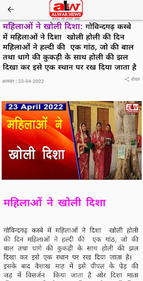 2) The first issue of Alwar News Hindi daily newspaper has been brought out on 21 April 2022 from Alwar district of Rajasthan.