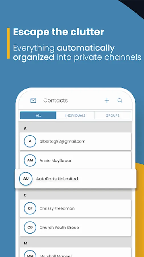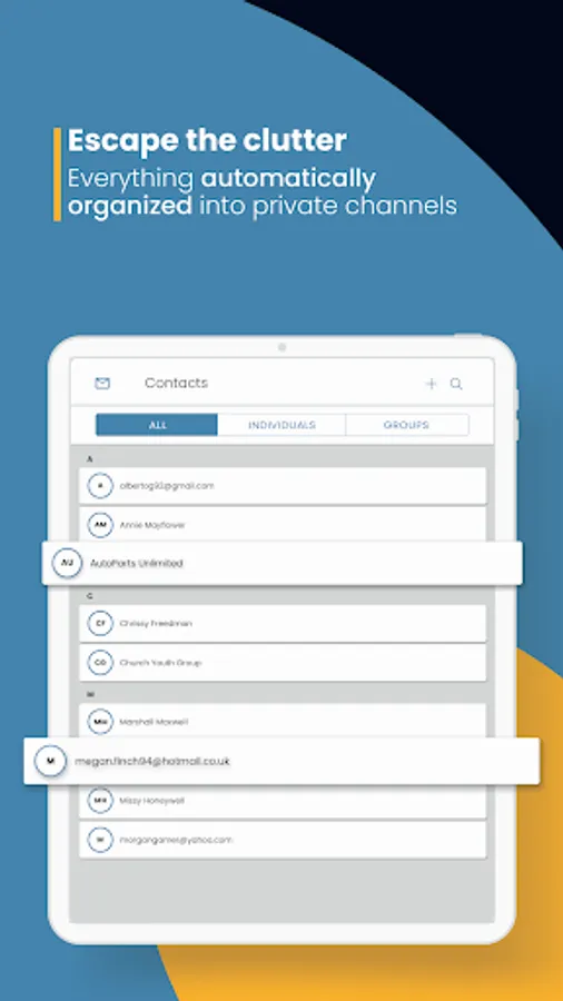 Your email automatically organized into private channels. So you can filter out the noise and find the stuff that really matters quickly and easily.