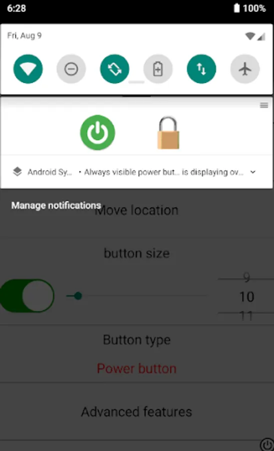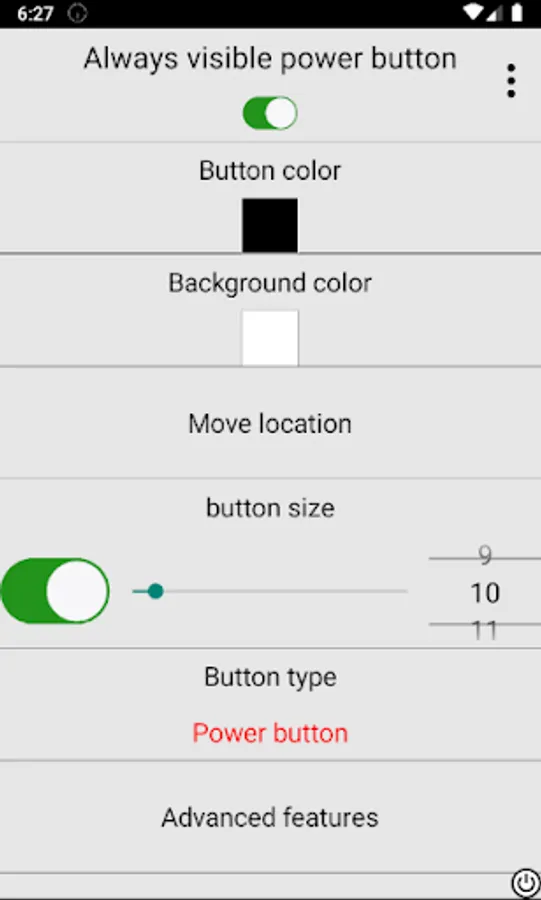 1) Click the 2nd line permission button to enable accessibility permission. If you enable the screen overlay permission, the power button appears on the screen.
