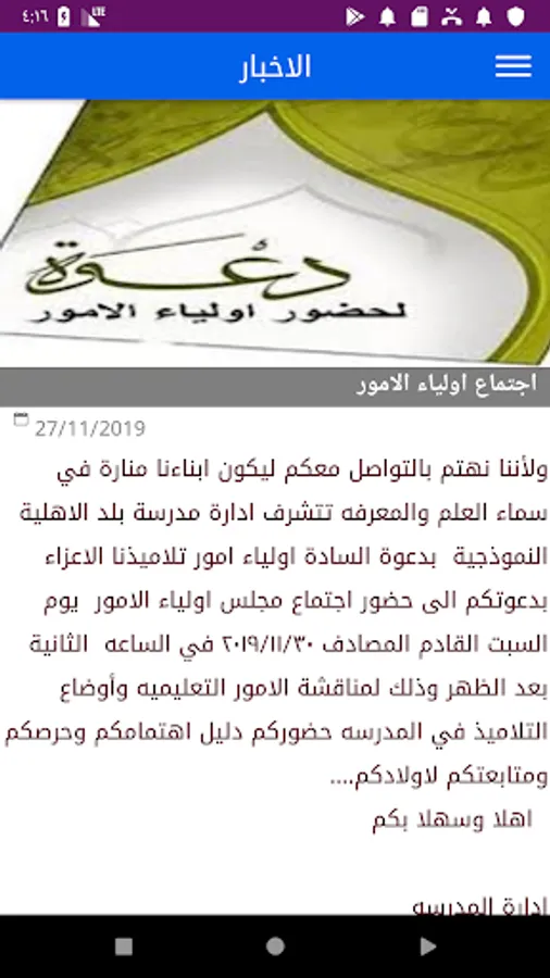 The application of the Dar Al-Warood Private School allows you to follow all your children from one screen, such as school day interactions, absences, behavior, duties, daily schedule, and exam schedule.