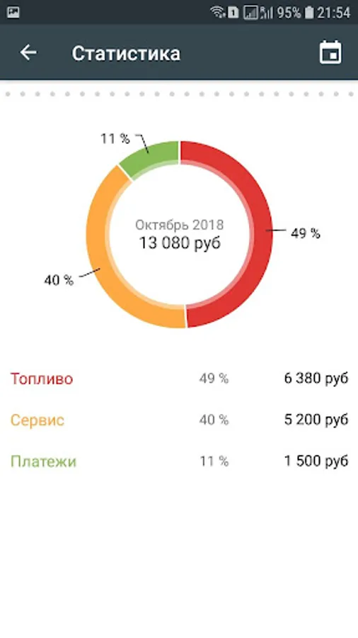 Enter the data on expenses or events (refueling, repairs, fines, etc.). The application will allow you to estimate the average fuel consumption, as well as what share this or that cost category of the total amount. Thanks to the modern and laconic design, everything is simple and intuitive. Your expenses are always at hand!