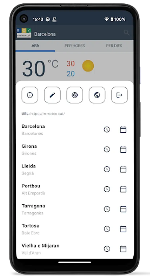 The fastest way to check the current weather in Catalonia through Meteocat's open data.