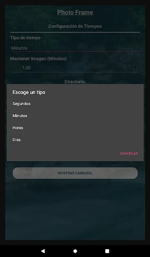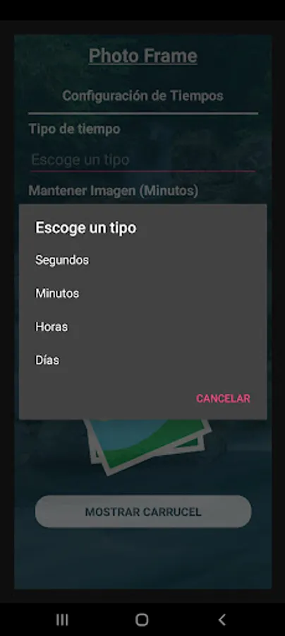 Puede modificar la configuración de tiempo en que se cambian las imágenes.